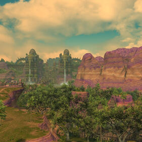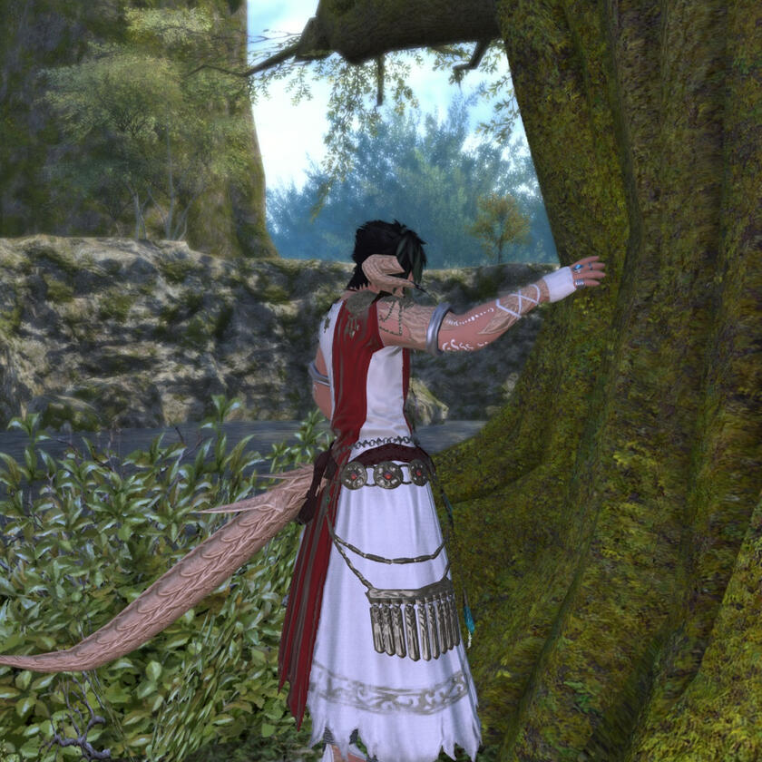 Sollus asked the harbormaster for passage to the farthest place West that he knew of. The man told him that would be Eorzea, and mentioned a merchant ship with room for passengers leaving the same day. Sollus balked at the estimated travel time, finding it hard to believe that the world was even large enough for such a lengthy journey to be possible. Nevertheless he resolved to go, needing to seek out the distant voice and his destiny. Embarking, he kept his gaze fixated on Othard as it shrank into the distance. It had been his entire world for his whole life...everything he knew, everywhere he had been, everyone he had ever loved, and soon he could no longer even see it.Similar to his crossing of the Ruby Sea, Sollus spent his time communing with the air and water elementals, asking the ones willing to speak about the local lands. He was beginning to truly get a grasp of just how many distant and strange places there were. He imagined all the problems they might have, and all the help they might need. While he knew he was just one person and could not possibly help them all, it was encouraging for him to think about it. While he could certainly help Sui-no-Sato flourish, he was more convinced then ever that the world needed him, and he could help so much more by leaving the tiny bubble of his birthplace behind.After the lengthy boat ride, Sollus arrived at last in Vesper Bay, a relatively small port in Thanalan, southern Eorzea. The hot dry climate was something completely new to him, and he took some time to familiarize himself with the area. The elements and the people both had seen and suffered much. He learned of the Seventh Umbral Calamity and the destruction it wrought upon the land. Many of the spirits were enraged or suffering due to the both local and widespread imbalances and pollution from corrupted aether. As Sollus beheld the massive craters and crystalized regions of the land he couldn't help but feel overwhelmed by so much work that needed doing. He had left home to purify a river, but this was an entire continent in desperate need of help.Resolved, he continued to follow the voice to the Northeast, able to hear it more strongly now. It gave him a faint whisper every few days to keep him heading in the right direction. He could tell it was a truly ancient and powerful elemental, stronger than any he had communed with before. Eager to discover the nature of this being and how he could be of use to it, he pressed even onwards. The landscape changed, and the climate along with it. The dry and rocky landscape of Thanalan falling behind as the great forest of The Black Shroud rose ahead and welcomed the young raen within its shaded boughs. As Sollus walked the quiet paths of the forest he could feel the gaze of the trees themselves upon him, boring into his very being, perhaps searching for something...or someone...