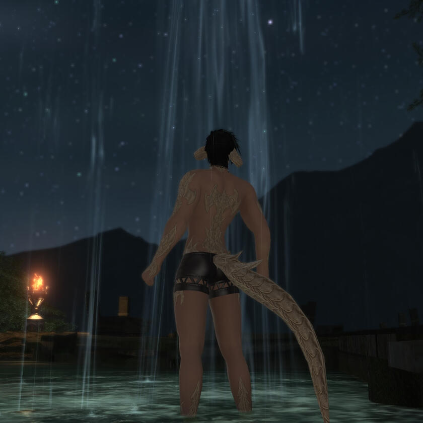 Eventually Sollus could take it no longer. Finally making up his mind, he bid his family and friends farewell. Fully accepting of his impending banishment in service of the whisper's call. Shiosai was a particularly painful farewell, the two regretting unspoken words, and never growing closer. A tight hug and a soft kiss and Sollus bid him farewell too, diving into the waters of the Ruby Sea and following the whisper west toward Yanxia.Despite the import of his mission Sollus could not help but feel elated as he moved into the Doman mountains. In his birthplace, the spirits of water were all around, and while others were present they were often drowned out. But here, all the elements danced and sang together. They were curious about the uniquely attuned raen, and Sollus found the company of their voices and emotions a soothing salve to the still fresh wound of leaving his home.Staying focused, Sollus carried on, following the whisper and speaking to the local water spirits to guide him upriver. The whisper grew louder and louder as he grew closer. The emotions of the elements beginning to grow chaotic and unpredictable. The air turned stale, the earth turned foul and loose. The spirits wailed and spawned manifestations of their rage. Sprites, living plants, and golems began to bore down upon the geomancer, and Sollus was forced to defend himself, putting them down and begging the elementals to let him help.As the terrain grew more difficult and the attacks grew more frequent he finally found the problem. A large, half-destroyed magitek warship lodged in a crag. Likely a remnant of the Garlean invasion of Doma. It was leaking ceruleum and other pollutants, and had formed a large pool of muck that had poisoned the river's source. Sollus spent days working tirelessly, speaking with the elements and soothing their fear and rage. Eventually the attacks slowed, then ceased, and the calmer elementals allowed the young geomancer to channel their power. With a crash of lightning and a splitting of the land, he sundered the crag and dropped the metal carcass and its pollution down into the dark depths of the earth. Conjuring a small landslide the ship was entombed, and the water began to run clear and pure once more.