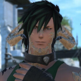 Sollus is a fairly imposing figure, even by Au'ra standards, his size and sometimes stoic demeanor can intimidate newcomers, and he takes his role as a healer and speaker for the elements quite seriously. As his area of expertise lies not in the application of brute force, he is not particularly muscular, keeping a slender yet fit build from plenty of travel and clambering over obstacles in the wilderness of the world.For those who choose to take some time to get to know him, they will find a deeply caring and thoughtful friend. Sollus holds honesty and kindness in the highest regard, believing that everyone is deserving of love and empathy. He believes no one should be treated as a means to an end, and that the hopes and dreams of all deserve to be cultivated and respected equally. Despite what may seem like a rather naïve point of view, Sollus does not hesitate to set himself opposed to those who manipulate, deceive, and destroy. The cruel and hateful will find a fearsome and resolute foe, one who will not hesitate to protect himself and others who find themselves threatened and oppressed.Despite being serious most of the time, when he finds himself amongst friends he will let his guard down, and engage in all manner of...unbecoming activities. Especially if someone manages to get a drink or two in him. He is actually quite shy and easily embarrassed if a more dominant personality decides to tease him. He gives as good as he gets though, and does his own fair share of ribbing to friends who are just as susceptible.